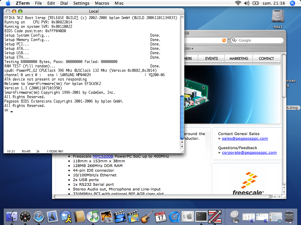 The cross-compilation toolchain (binutils, gcc & newlib) runs on the EFIKA (30 hours of compilation from source to set it up).